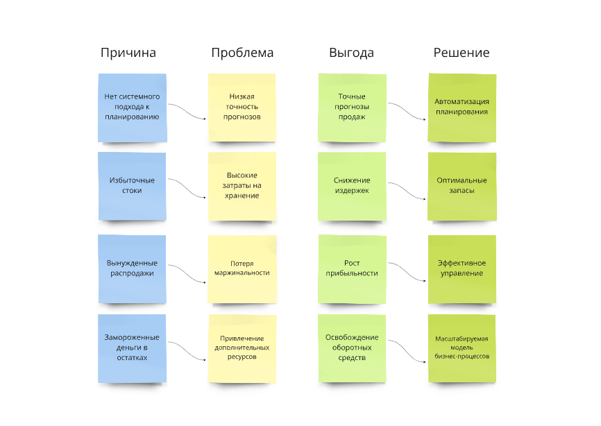 Внедрение системного подхода к планированию, который позволит точно прогнозировать спрос и оптимизировать запасы для увеличения прибыльности бизнеса за счет оптимизации затрат на хранение и снижения количества распродаж и неликвидов